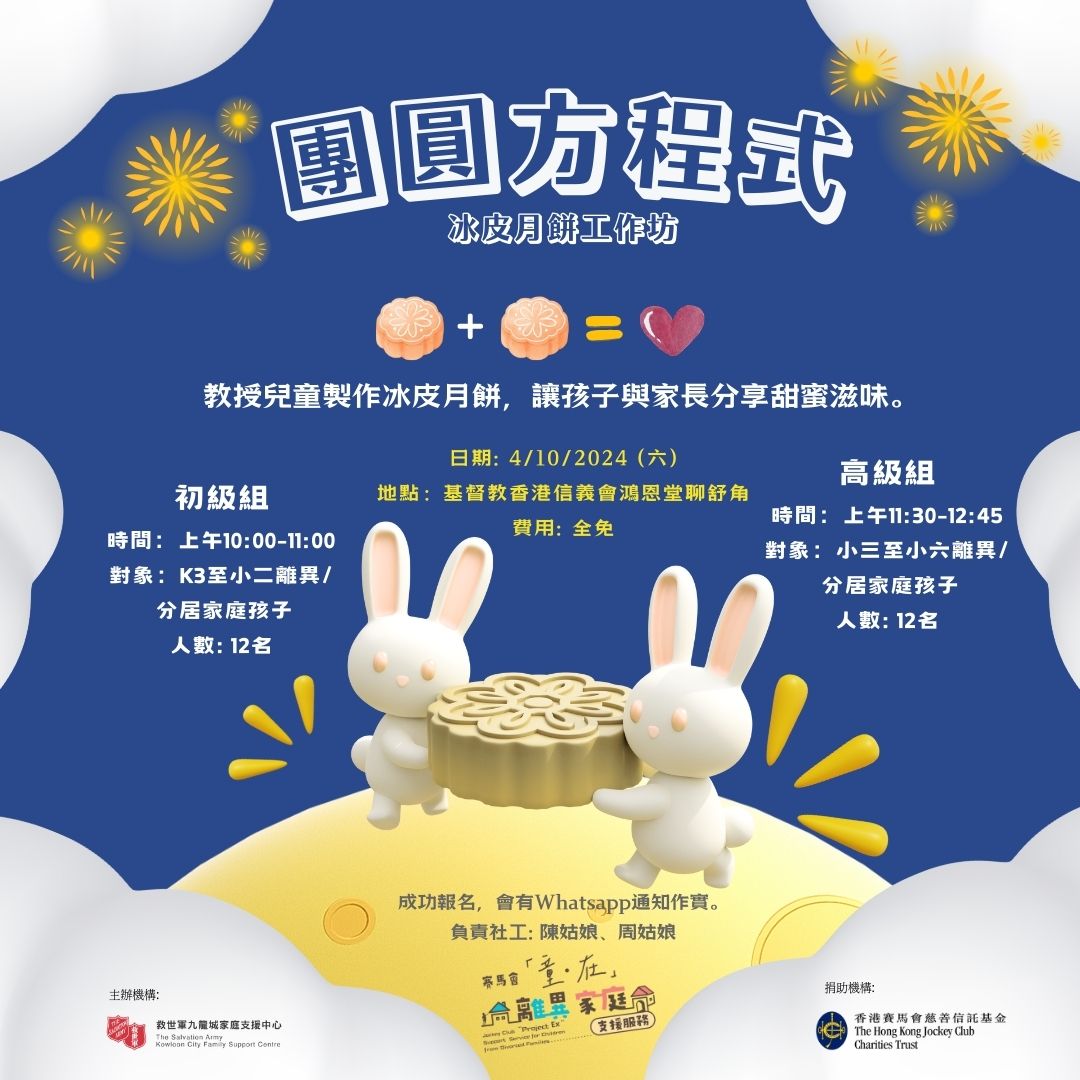 🌕中秋節是代表團圓🏮的日子,對於正經歷離異的家庭可能是一個百感交集的日子🎑。 藉著與孩子一起製作冰皮月餅🥮,學習向家人表達愛意的方法,在中秋佳節與家人分享甜蜜滋味,為這節日重新加添意義。